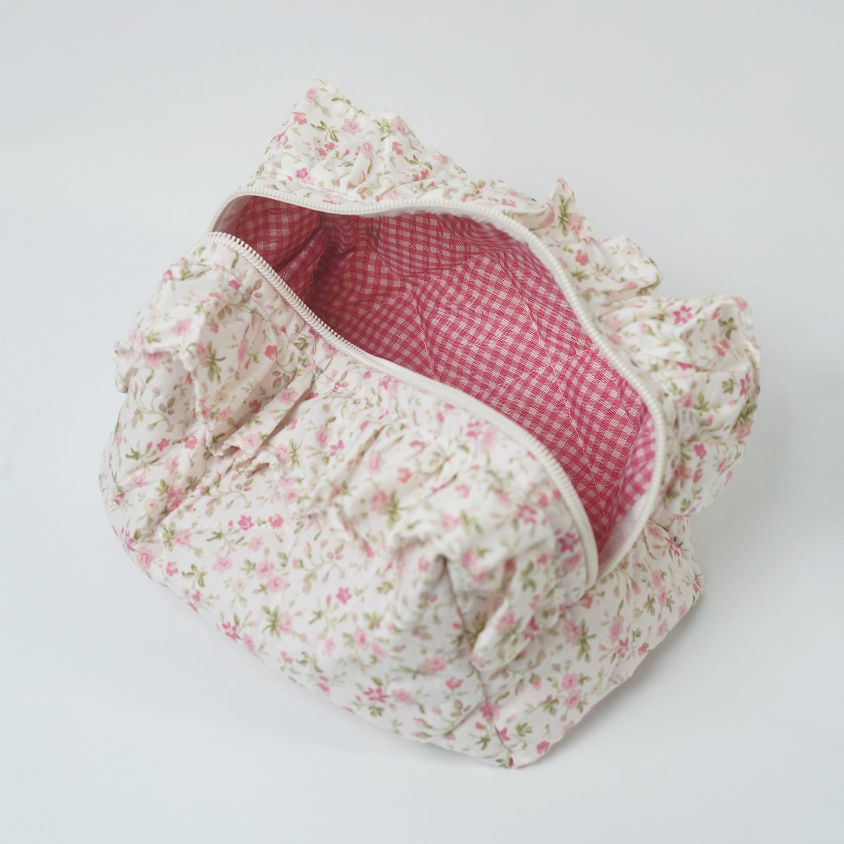 Handmade with soft poly-blend cotton (97% cotton) and lined with gingham inside, our pouches feature floral and Pinterest-inspired prints. They're durable, easy to wash, and designed for everyday use — whether for makeup, stationery, or travel essentials.